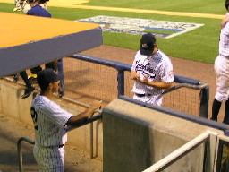 昨年のアテネ五輪にカナダ代表として出場していたデューシーは、今年からヤンキースの打撃コーチに就任している。ファイターズ時代は、一発のあるトップバッターとして存在感のある選手であった。DJが同点ホームランを打った試合でも、途中に逆転ツーランを打っている。そんな彼が、子供ほどの歳の選手たちと楽しそうに談笑している。