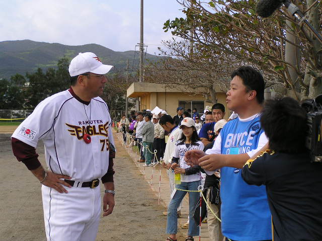 さて一応阪急ネタも振っておきたい。GMのマーティ・キーナート氏である。練習開始直後には、外国人選手や首脳陣と話をしていたのを見かけたがその後姿が見えなくなってしまった。何とか声くらいかけたいなと思っていると取材陣から「GMは楽天のキャンプ応援ツアーの出迎えに自ら歓迎ボードを持って空港に向かったらしい」という話が聞こえてきた。そんなんGMの仕事と違うやろ?森本さんに怒られるぞ!といいつつその代わりとなると三木谷オーナーくらいしか思いつかんのも事実。