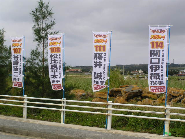とそこへ沸いてきたのが、東北楽天ゴールデンイーグルスである。昨年11月の拡張ドラフトやその後の選手獲得発表によってイーグルスのメンバーが明らかになり、キャンプ地が久米島に決まると、俄然行きたくなった。また、常日頃応援しているハム2軍も当然沖縄でのキャンプであることから、これらを見るツアーを画策したわけである。ダルビッシュがハム2軍キャンプにいることが誤算(別に嫌いではなく、人が多くなってしまうのが嫌なだけ)だったが、何はともあれ、2005年2月4日に那覇空港に降り立った瞬間、日本の全都道府県制覇が達成されたのであった。