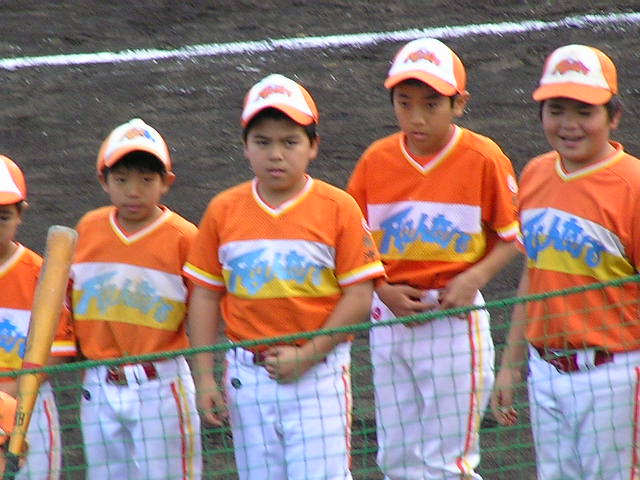 選手はホテルから自転車や徒歩で三々五々球場にやってきている。自分でもたいしたものだと思ったのは、ほとんどの選手の顔がわかるということである。確かにこのチームはベテランというか長い間野球をやっている選手が多く、中堅若手が近鉄とサーパスという、比較的?自分が応援している球団の出身なので、それもなるほど分からなくはない。一方で、背番号と選手が一致しなかった。28番が誰か分からず、顔を見て金田と確認しているような状況であり、メンバー表を見つけるまでは少々苦労させられた。また、少年野球選手たちもプロ選手の球場入りを待っていたが、本州の「ボールちょうだい」馬鹿とは違って全くすれてないこどもたちで、選手に「おはようざいます」とちゃんと挨拶をしている。また選手も「おはようございます」と挨拶をしている。いい光景だ。私を取材陣と間違えたのか、森谷は自分から挨拶してきたぞ。