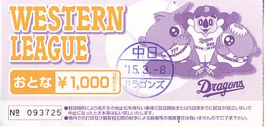 ご存知の通り学校が休みの期間中売り出されるこのきっぷは、11300円で5日間、JRの普通電車に乗り放題というものである。私は、中学生の頃このきっぷの存在を知り、高校生の頃は東京まで野球を見に行ったり、大学生の頃の帰省にも大いに活用したものである。今回、久々にこれを買い、どこかへ行ってみたくなった。3月上旬に廃止された足利競馬と、下旬の会社のゴルフ大会に使うことは確定したのだが、あと3枚ある。色々考えたが、ちょうどナゴヤでサーパスの試合が行われることが分かり、ナゴヤなら往復で使っても体力的に大丈夫だろうと判断し、ナゴヤツアーを決行することにした。その後凹さんときむさん(阪急ファンでいこう 管理人)も一緒に試合を見ることになり、また翌日は名古屋在住の中学高校時代の友人Z(阪急ファン)と一緒に見ることになった。二軍のしかも教育リーグの、しかもビジター球団の応援に2日とも別々の観戦者がいるとは、持つべきものは友である。
