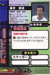 これまたゲームのカードだ。これは敢えて裏面を載せてみた。特殊能力で「信頼の強打者 3塁に走者がいて、ストライクをスイングしたとき、必ずバットに当たる」とある。康雄さんの場合は、「バットに当たるかどうかはわからんが、当たれば飛ぶ」のような気がするが。